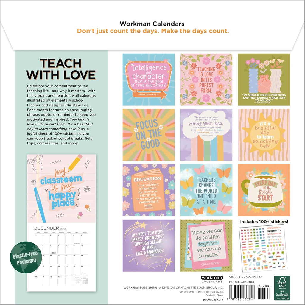 FUN AND FUNCTIONAL: Illustrated with charming hand-lettering by elementary school teacher and designer Christine Lee. Plus colorful stickers for tracking days off, class trips, conferences, and more!