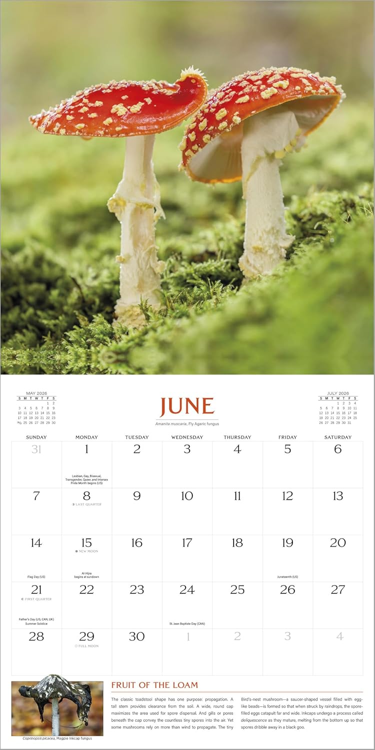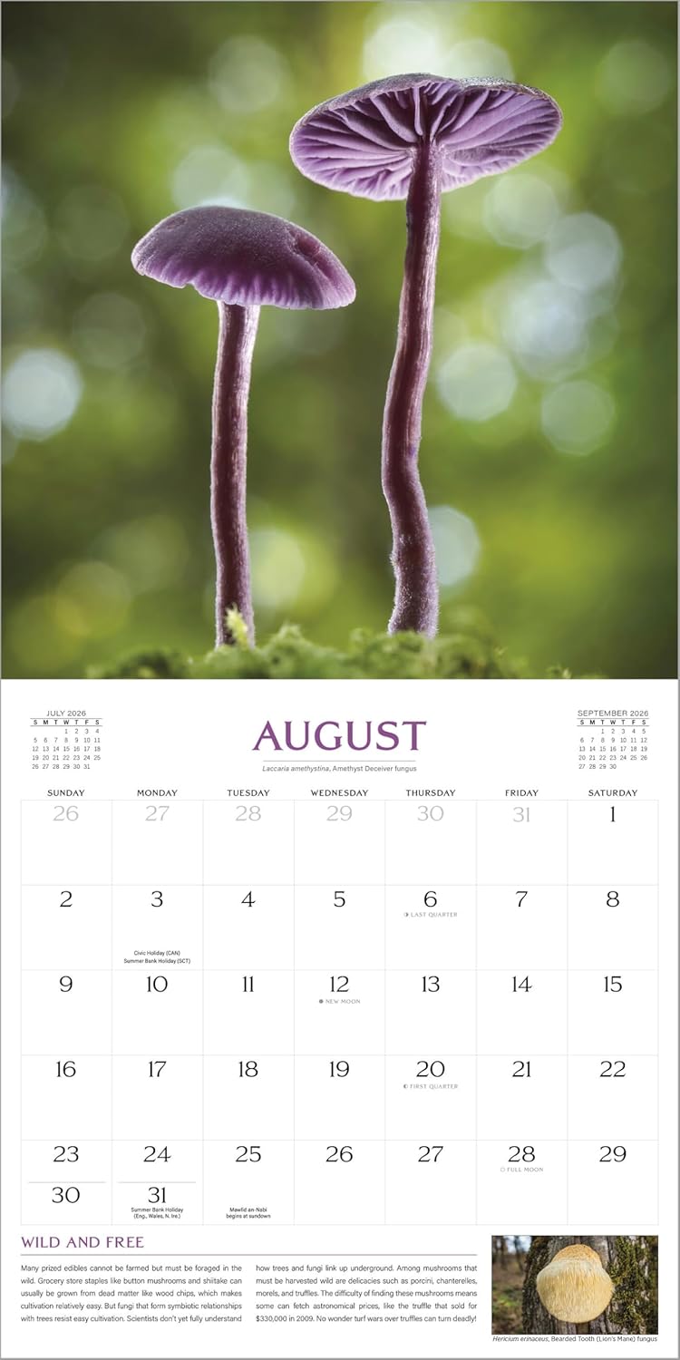 WONDERFUL NATURE: Enjoy twelve months of exquisitely photographed, wildly beautiful fungi and mushrooms accompanied by captions packed with incredible facts.