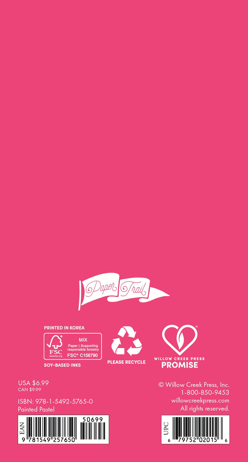 BROAD STROKES – Captivating watercolor strokes in translucent hues add sophistication to the Painted Pastel 2-Year Monthly Pocket Planner. Each month is a blank canvas inviting you to paint each day with purpose and creativity. Artistically inviting, this checkbook-style pocket planner provides two years of scheduling from January 2026 to December 2027.