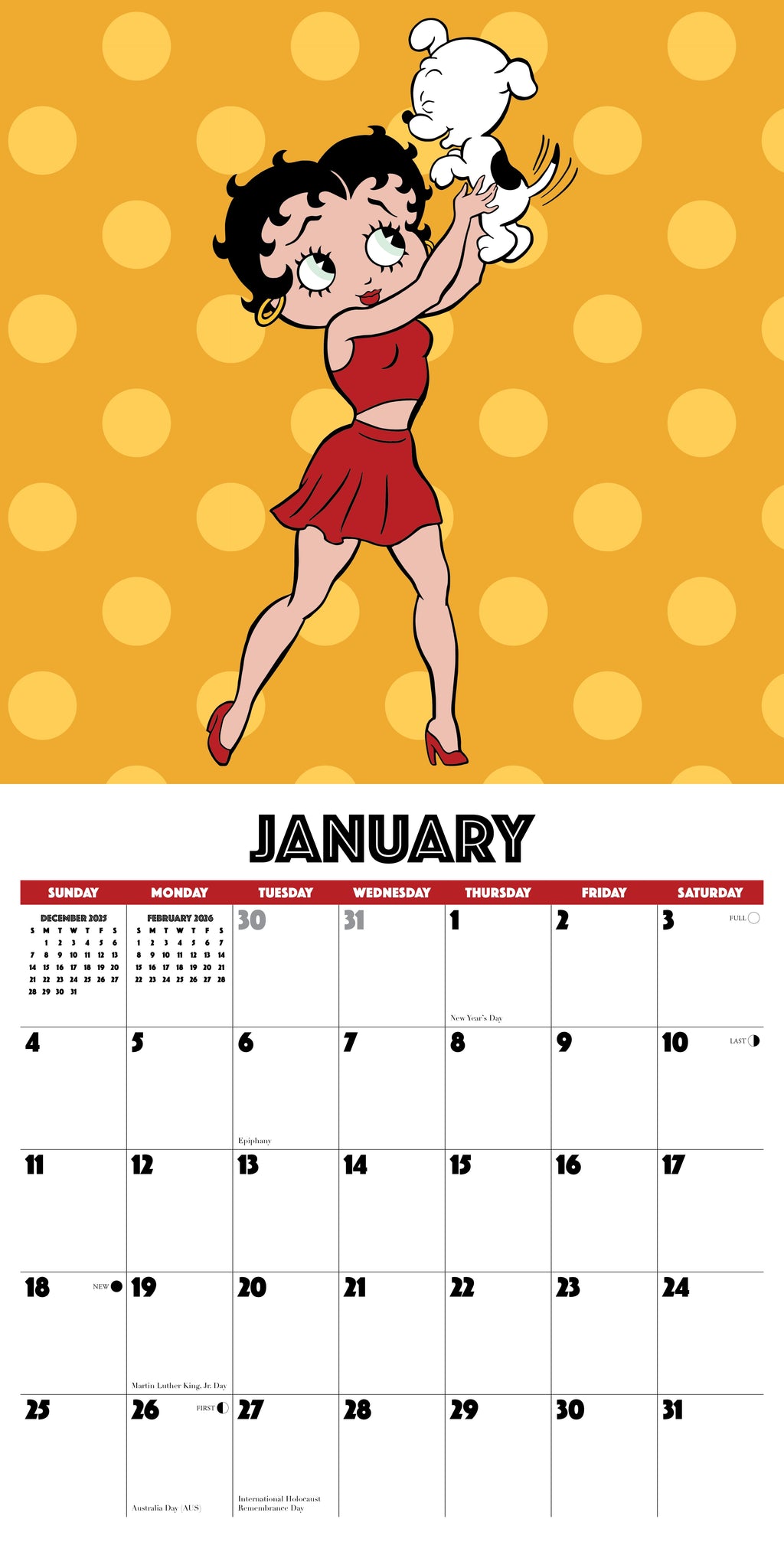 • THE PERFECT GIFT – Give the carefree joy of the 1920s with the 2026 Betty Boop 12” x 12” Wall Calendar. It’s the perfect gift for fans of the feisty flapper who became an animated icon. .