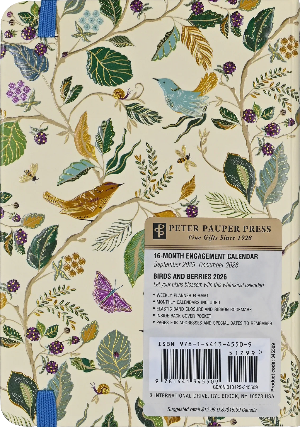 Lightweight calendar measures 5'' x 7'' and slips easily in most bags and backpacks.