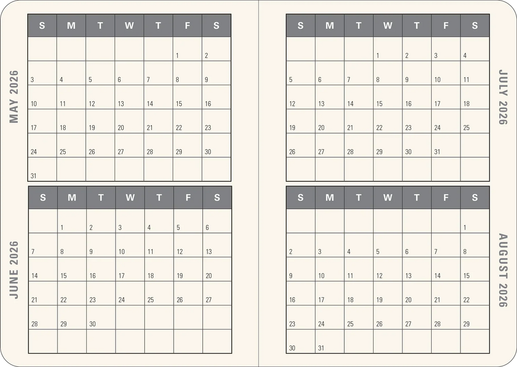 Included: Mini reference calendars, 1 for the current month, 1 for the month to come.