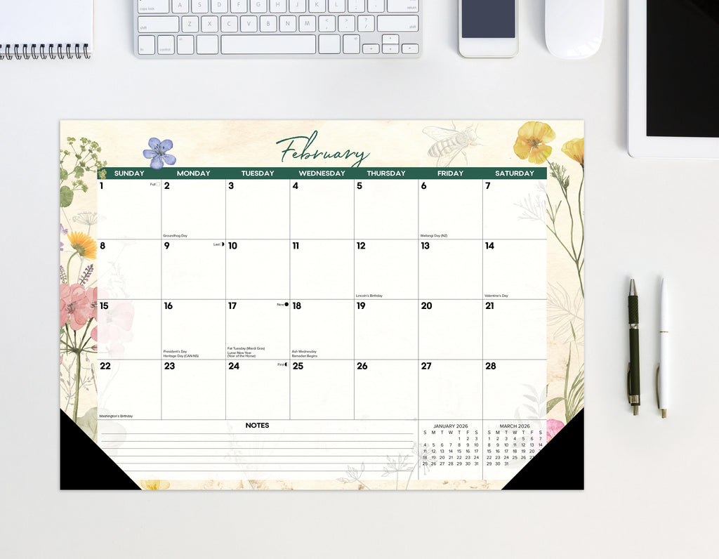 Bring the beauty of nature to your workspace with this deskpad calendar, featuring elegant botanical illustrations and ample space for schedules, notes, and to-dos. Perfect for jotting down important dates and notes, this deskpad is a versatile addition to your workspace.