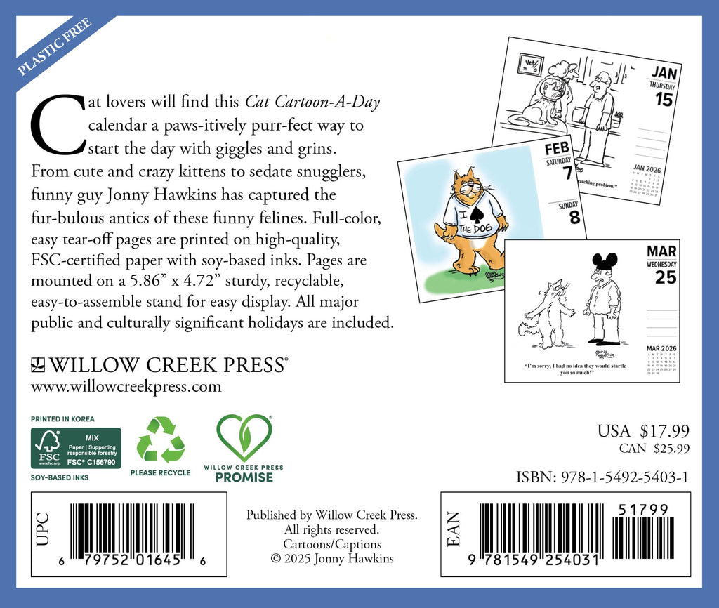 FELINE FUN – Enjoy a daily dose of purr-fect humor with Jonny Hawkins' Cat Cartoon-A-Day calendar.