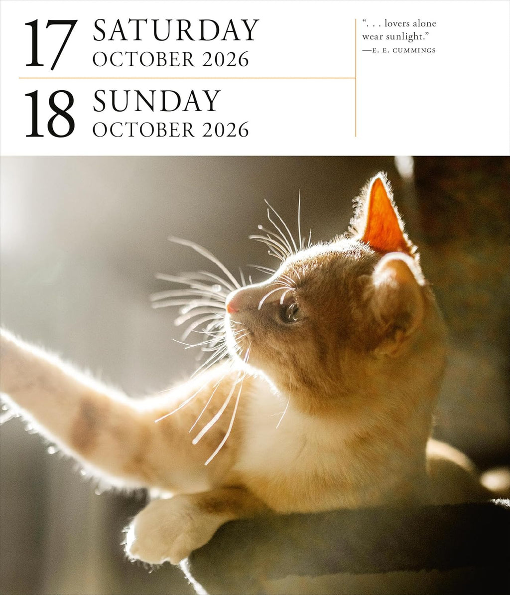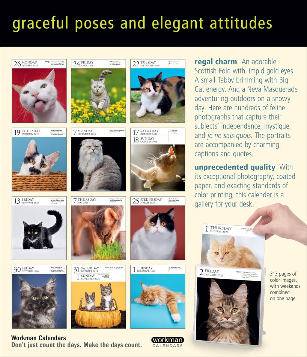 GORGEOUS GIFT: Cat lovers of all stripes will have a delightful year with this calendar full of lush photos with witty captions, trivia, and quotes in the elegant gallery format.