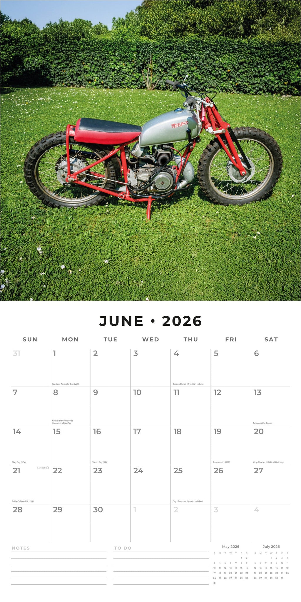 Packaged in a 100% plastic-free, sustainable, FSC-certified envelope, this 2026 Classic Bikes Square Wall Calendar from Red Robin Publishing Ltd includes 12 months plus 4 bonus months, providing extended planning and a full year of enjoyment. .