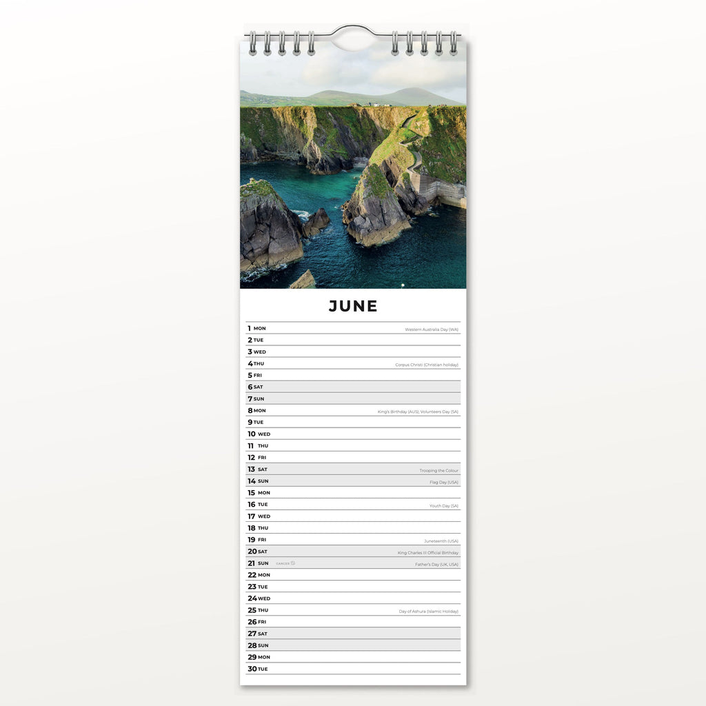 Explore the year ahead with our exquisite 2026 Coaslines of Ireland - Slim Wall Calendar, showcasing 12 stunning 41 x 15 cm images—one for each month. With its sleek vertical format, this calendar brings a stylish and space-saving touch to any wall, while highlighting the beauty of Coaslines of Ireland throughout the year.