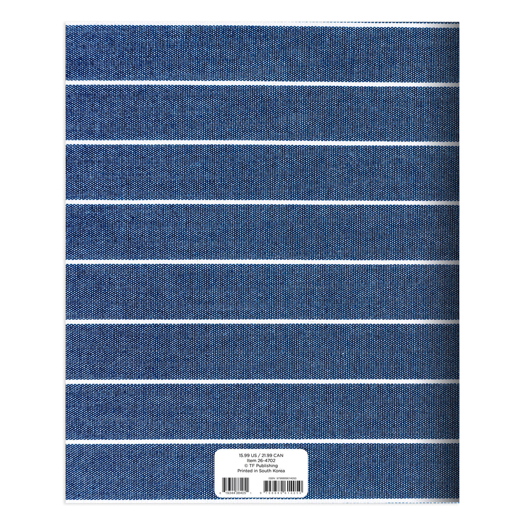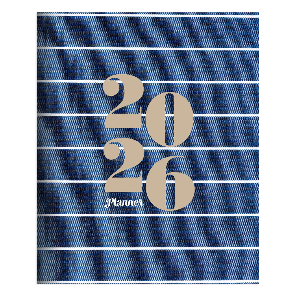 Organize all of life’s chaos in style with our classic 9" (w) x 11" (h) monthly planner featuring a striped denim cover design! This 2026 planner has 12 monthly views, January 2026 - December 2026, each spanning two pages. The extra-large grids provide ample room for all of your important information and additional monthly pages for events, appointments, and notes. Bonus pages include, yearly views of 2026 and 2027 and lined notes. The monthly boxes measure 2" (w) x 2" (h). The premium cover is pliable, yet durable, and lays flat. This product contains no plastic. Printed on FSC-certified paper.