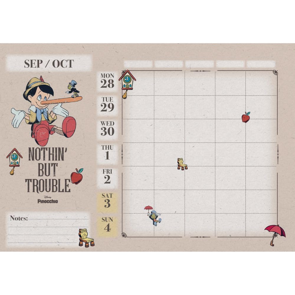 Celebrate Disney Classics throughout 2026 with this A4 sized calendar, packed with sweet, illustrative imagery. Each month features an image that captures the best of Disney, along with spacious date panels for appointments and reminders. Made from premium-quality paper, this calendar is both a practical tool and a whimsical art piece that brightens your space. Make every month a celebration. .