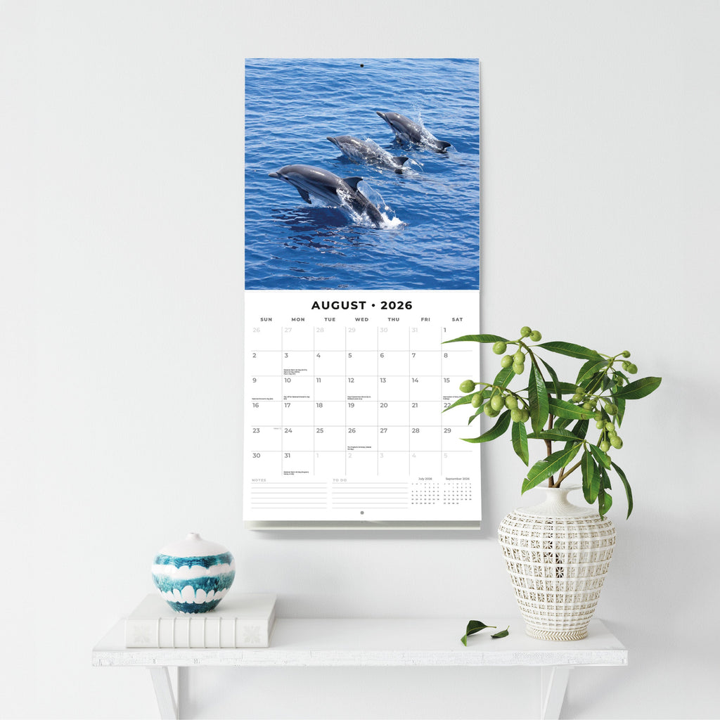 Step into the year ahead with our exquisite 2026 Dolphins - Square Wall Calendar, featuring 12 stunning 30 x 30 cm photos of dolphins—one for each month. Each image captures the essence of the theme, bringing beauty and inspiration to your space all year long.