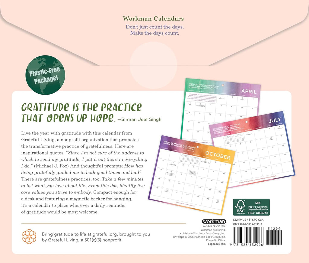 MAGNETIC FORMAT: With a magnetic backer plus drill-hole, these 9 ½” x 8 ¼” padded calendars are perfect for the fridge, desktop, or to hang on the wall – wherever a daily reminder of gratitude would be most welcome.
