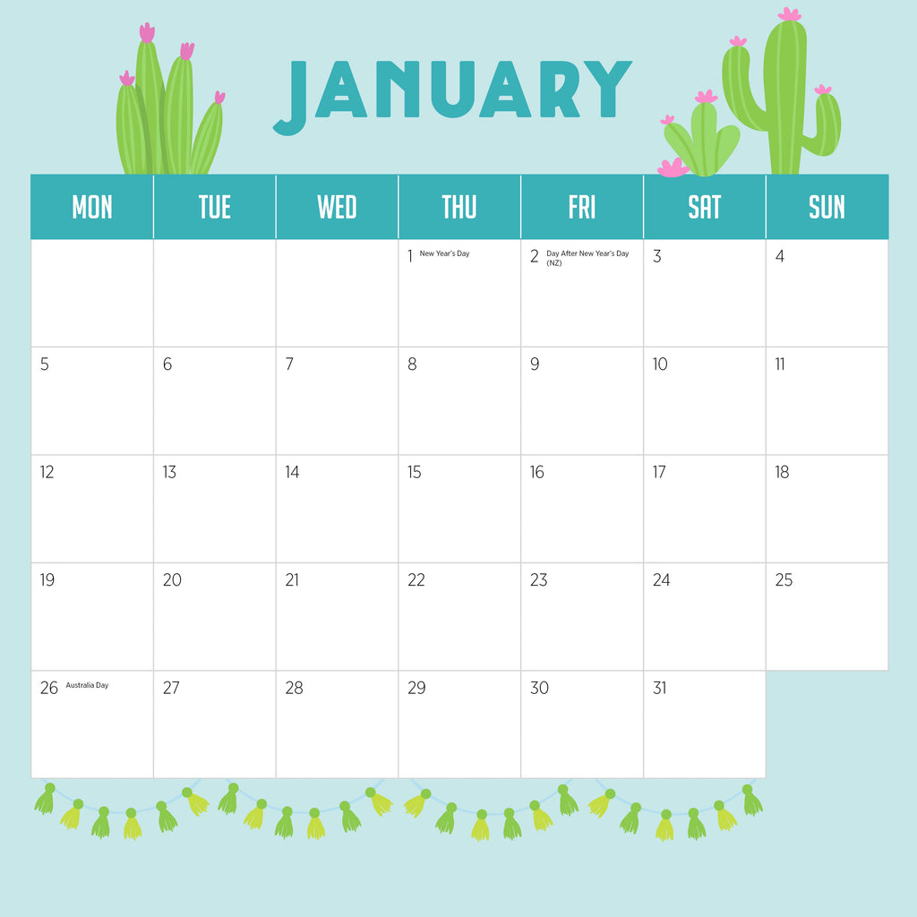 This square wall calendar covers 18-Months. Every month of the year from January 2026 to December 2026 is included, with 2027 dates also listed on a separate single-page overview. The size of the wall calendar is 300mm x 600mm when opened. Each week displayed in the calendar begins on a Monday, and all major Public Holidays and 2026 School Term dates for Australian and New Zealand Public Schools are also included. You won’t miss a beat in 2026!