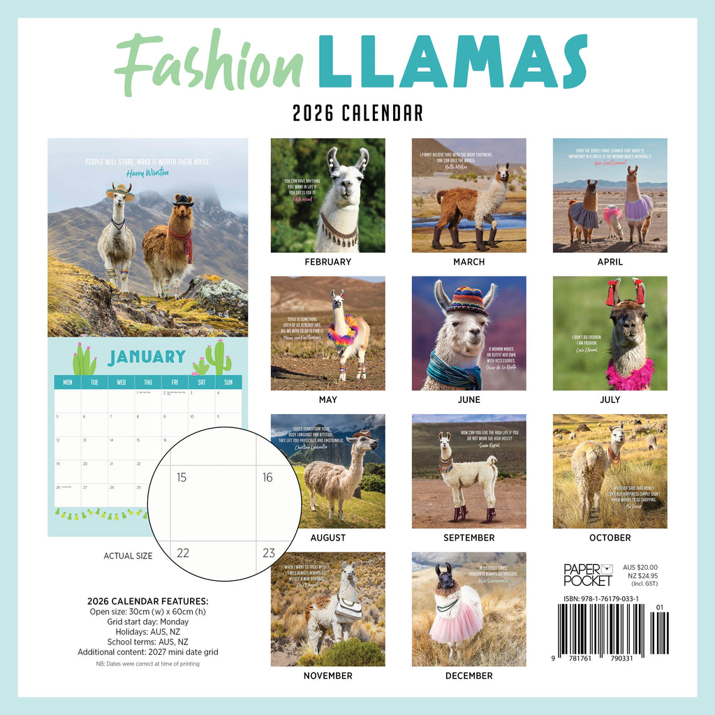 Step aside unicorns, there's a new trend-setting creature in town... the llama of course! This 2026 wall calendar prepare for a cuteness overload - come take a ride in the llamabogini!
