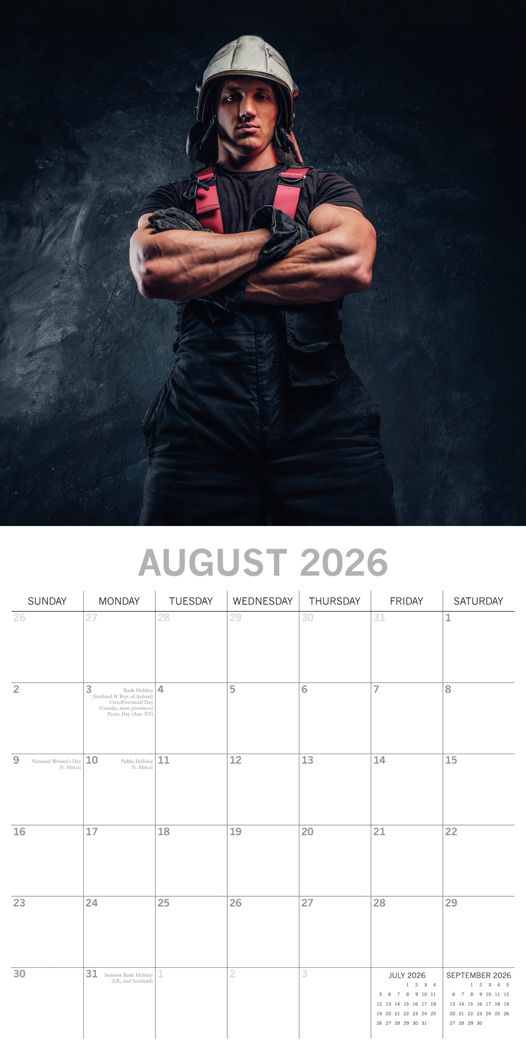 The 2026 Firefighters Square Wall Calendar spans 16 months—from September 2025 through December 2026—with the final four months of 2025 presented in a compact, mini-grid format. Each monthly spread begins on Sunday, with the top half showcasing a beautiful image and the bottom half featuring an easy-to-read monthly layout. The calendar comes shrink-wrapped for protection. .