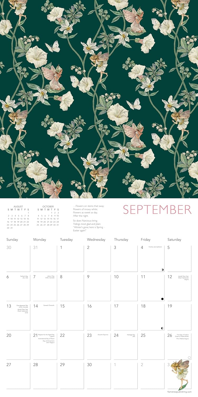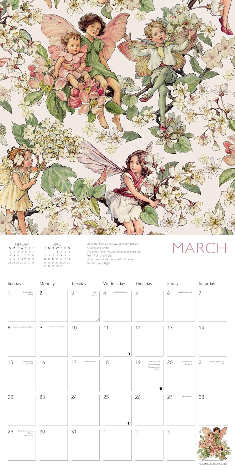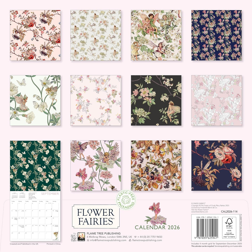 Since their first publication in 1923, Cicely Mary Barker’s Flower Fairies have enchanted both adults and children alike around the world. The botanically accurate drawings in the original illustrations, coupled with the enchanting fairy images based on real children from Cicely’s sister’s nursery school, appeal to our innate sense of magic and wonder. This wall calendar brings together Cicely's artwork in delightful, sumptuous patterns that any fan of fairies will love. Informative text accompanies each work and the datepad features previous and next month’s views. Printed on FSC-certified paper, with plastic-free packaging.