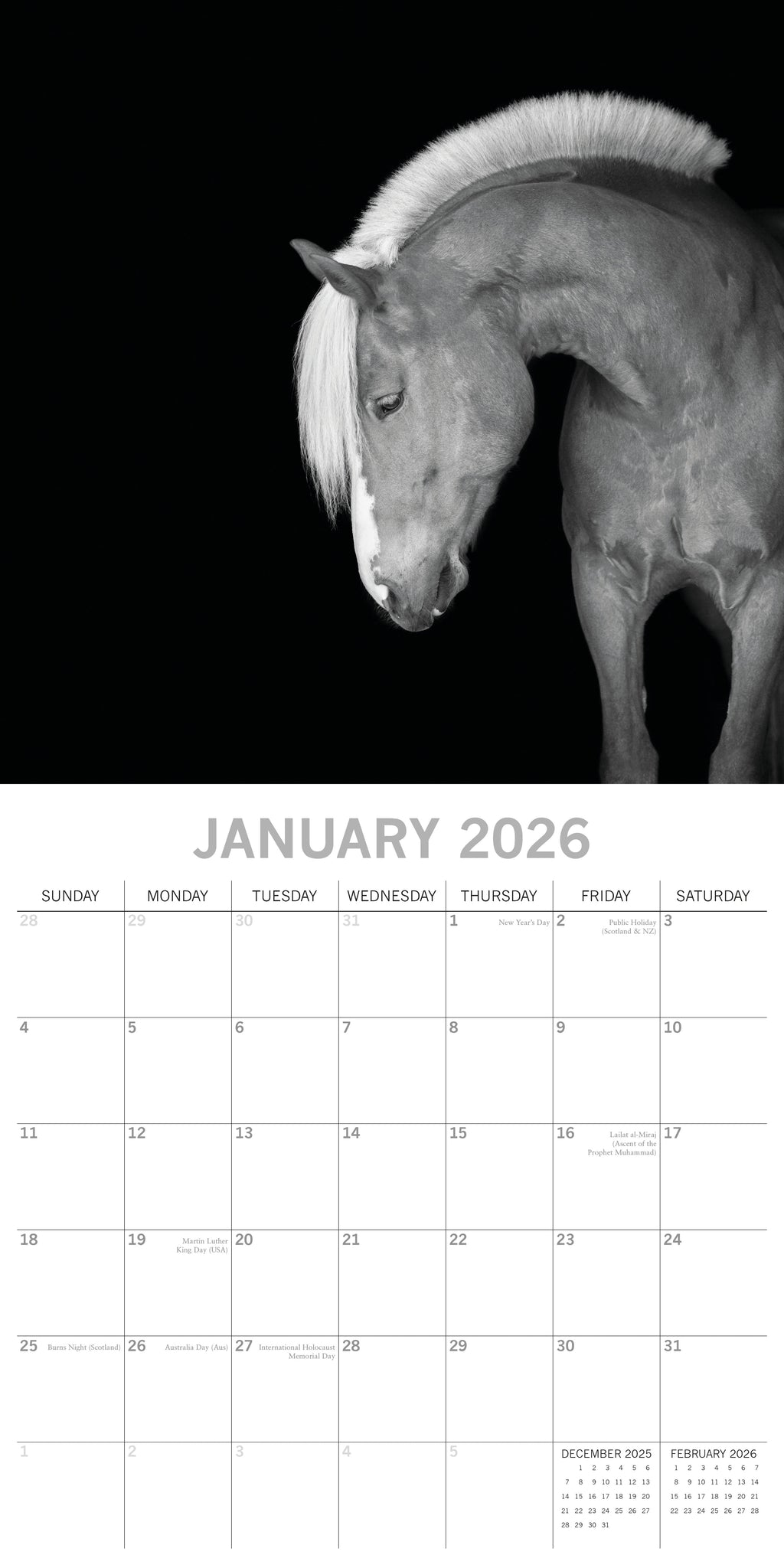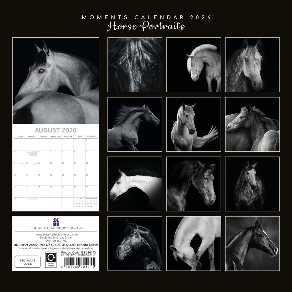 This exquisitely designed 2026 Horse Portraits Square Wall Calendar from The Gifted Stationery Co. is ideal for your home or office and makes a thoughtful holiday gift for your loved ones. It features 13 stunning images of Horse Portraits and includes large date grids for jotting down appointments, birthdays, and other important events. When opened, it measures 30 x 60 cm.