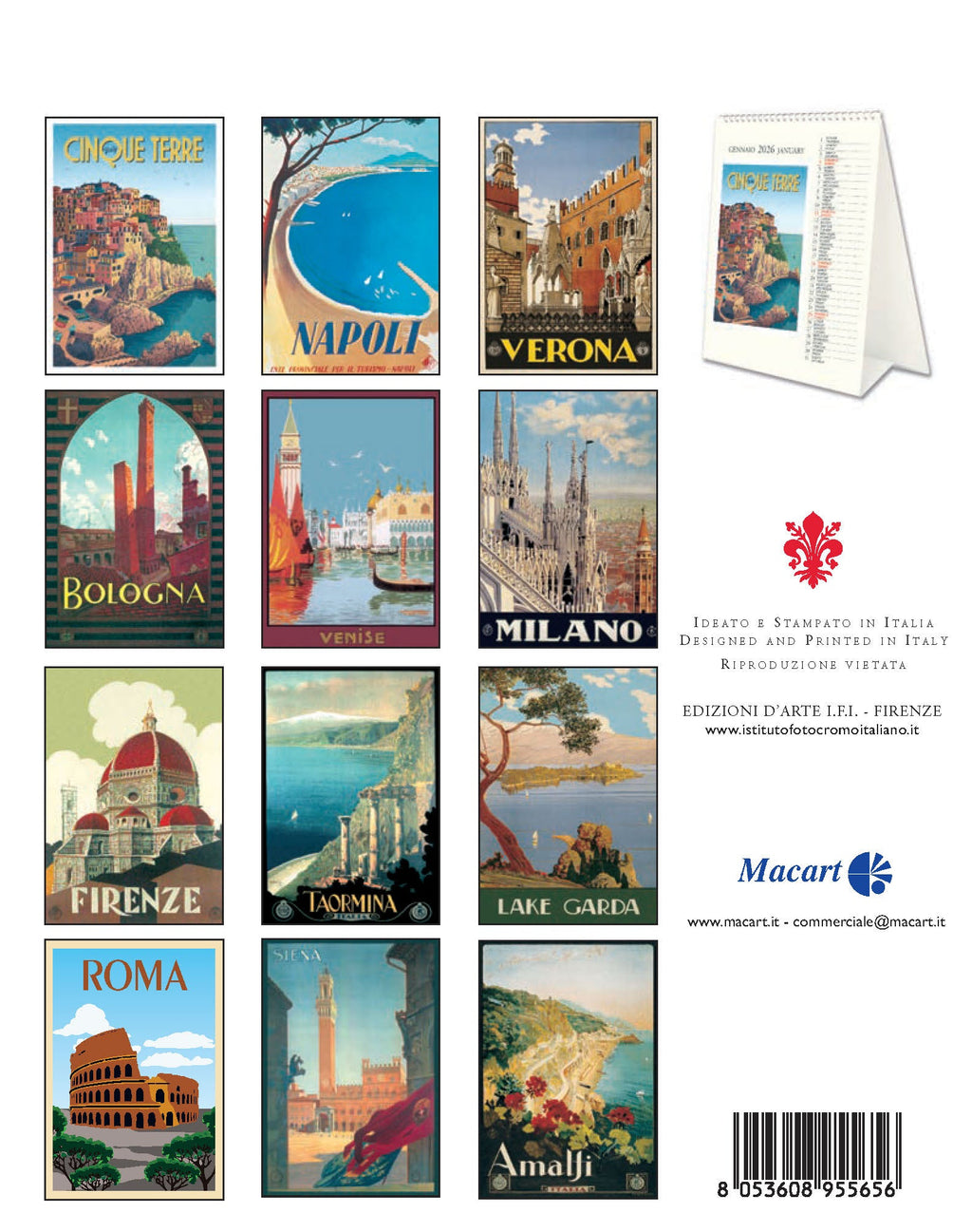 Bring a touch of Italy to your desk with the Italia – 2026 Desk Easel Calendar. Featuring vintage-style prints that capture Italy’s diverse landscapes and cultural charm, it’s a year-long celebration of Italian beauty.