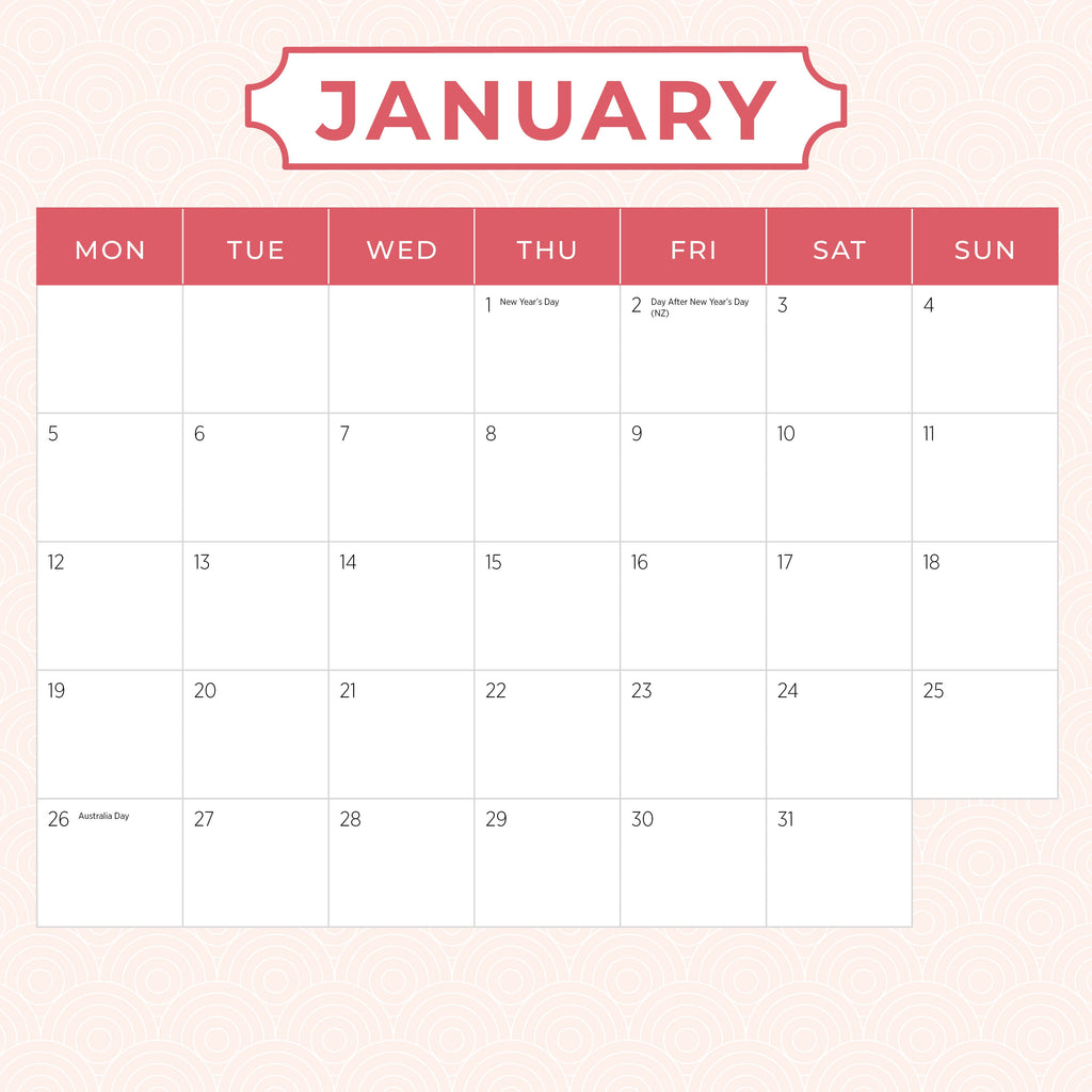 This square wall calendar covers 18-Months. Every month of the year from January 2026 to December 2026 is included, with 2027 dates also listed on a separate single-page overview. The size of the wall calendar is 300mm x 600mm when opened. Each week displayed in the calendar begins on a Monday, and all major Public Holidays and 2026 School Term dates for Australian and New Zealand Public Schools are also included. You won’t miss a beat in 2026!