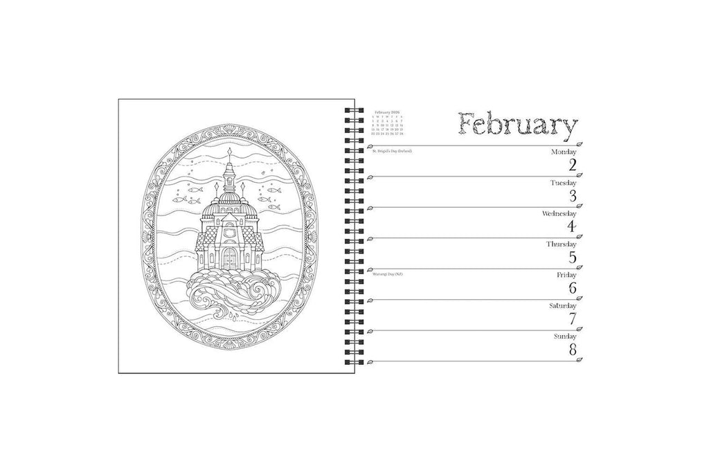 Each weekly illustration in this breathtaking planner features a striking selection of Johanna Basford’s whimsical artwork pulled from her best-selling books. Fans of Johanna Basford will recognize and appreciate her detailed, intricate, and dream-like illustrations, designed to transport users to other-worldly locations and unlock fantastic adventures.