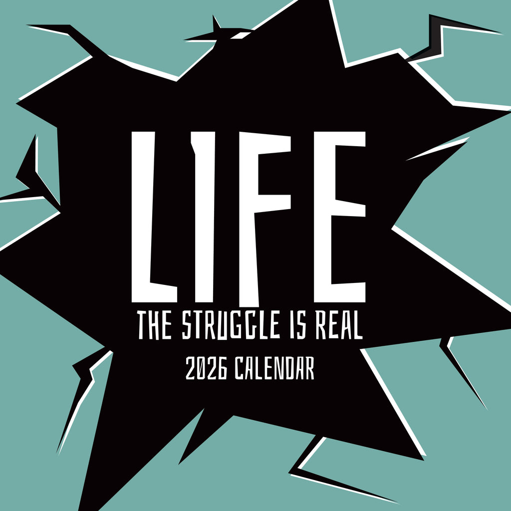 The 2026 Life - The Struggle is Real Square Wall Calendar spans 16 months—from September 2025 through December 2026—with the final four months of 2025 presented in a compact, mini-grid format. Each monthly spread begins on Sunday, with the top half showcasing a beautiful image and the bottom half featuring an easy-to-read monthly layout. The calendar comes shrink-wrapped for protection. .