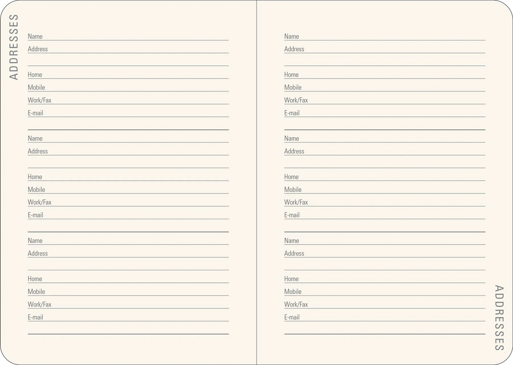 Includes space for contact details and dates to remember.