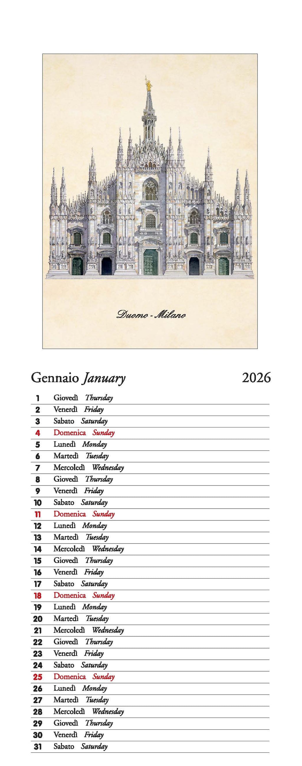 Celebrate the fashion and flair of Milan with the Milano – 2026 Slim Wall Calendar. With stylish vintage-style illustrations, this calendar reflects the elegance, architecture, and energy of Italy’s design capital.