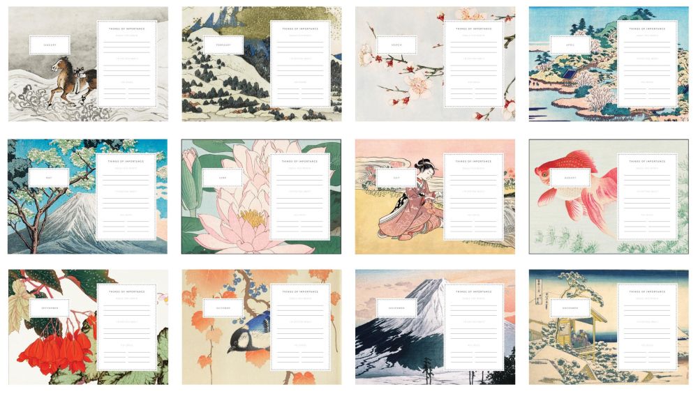 - Year to view, monthly planner, monthly ""things of importance"" page, monthly budget