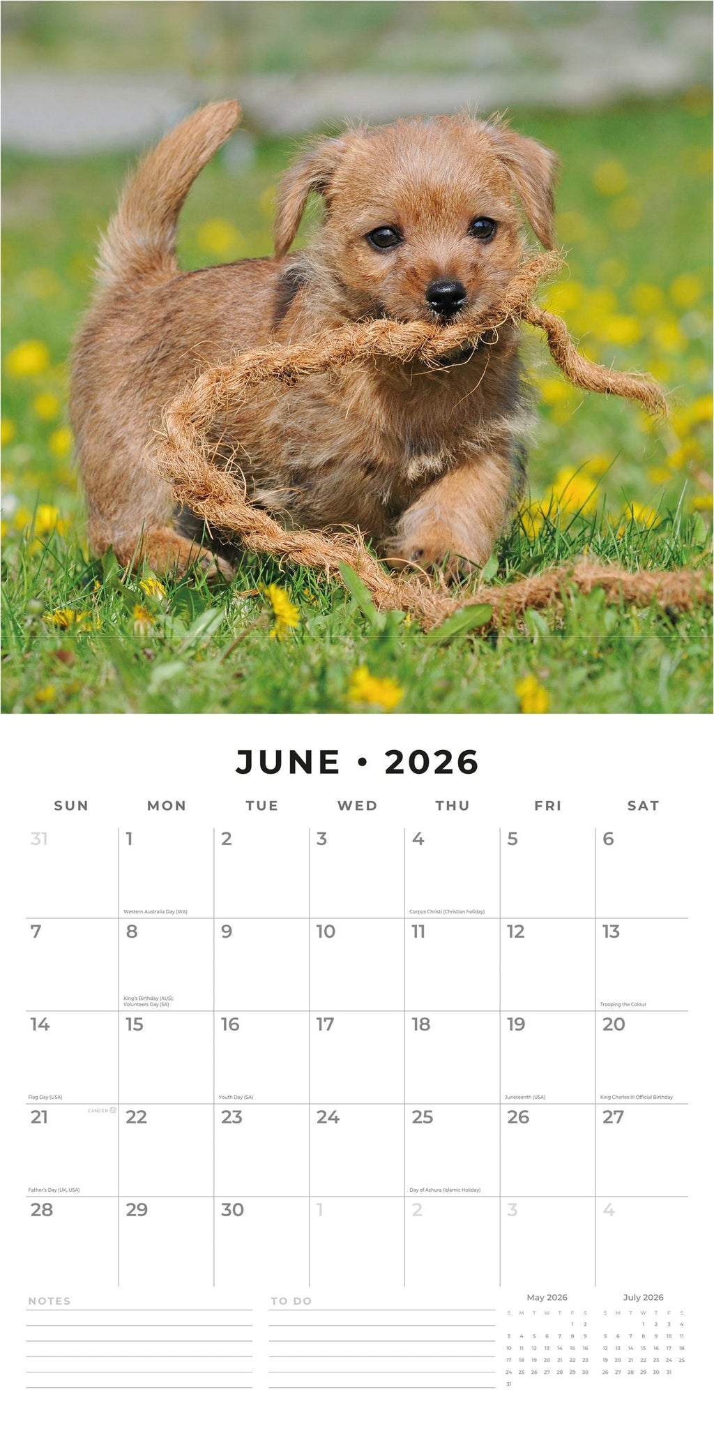 Packaged in a 100% plastic-free, sustainable, FSC-certified envelope, this 2026 Norwich & Norfolk Terriers Square Wall Calendar from Red Robin Publishing Ltd includes 12 months plus 4 bonus months, providing extended planning and a full year of enjoyment. .
