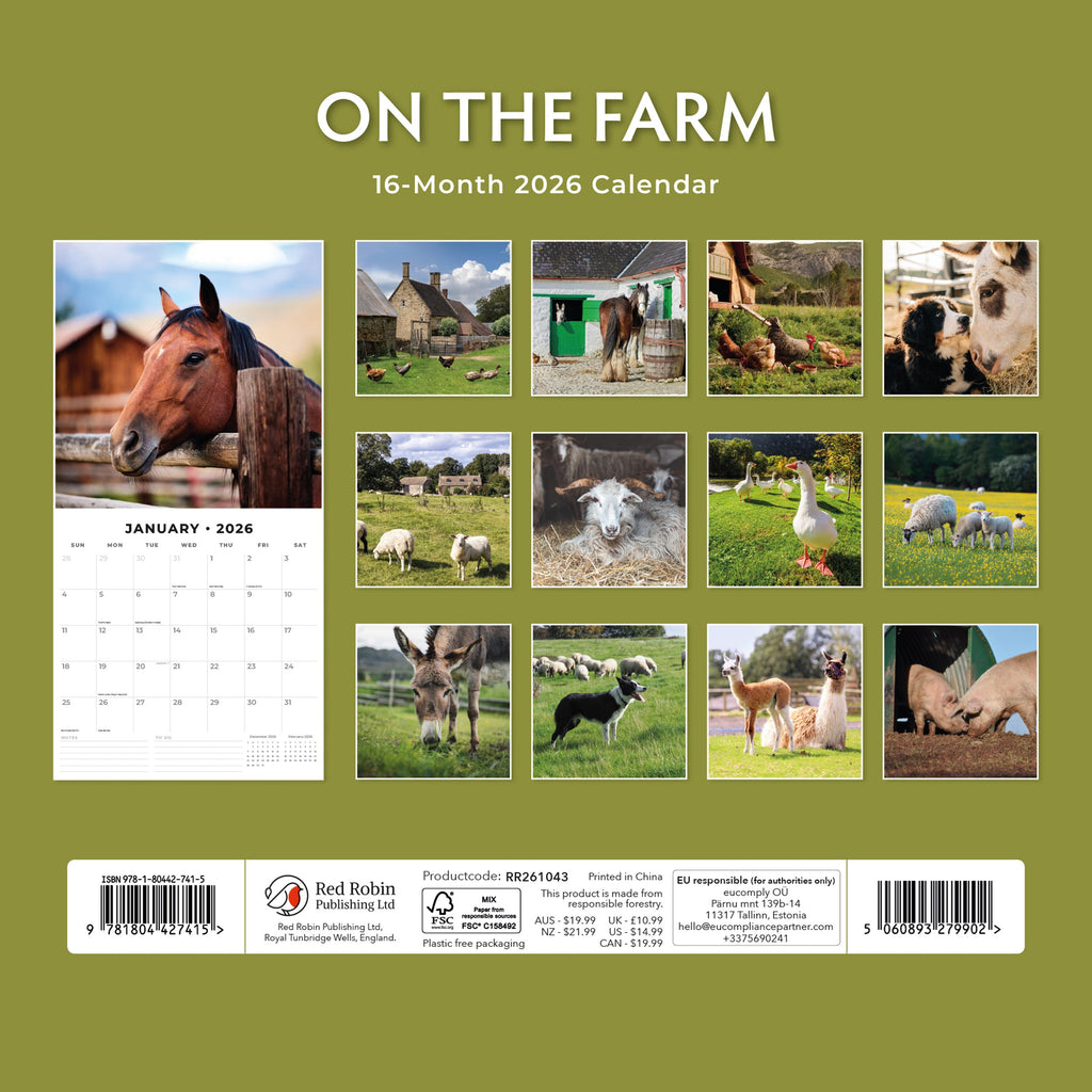 Packaged in a 100% plastic-free, sustainable, FSC-certified envelope, this 2026 On The Farm Square Wall Calendar from Red Robin Publishing Ltd includes 12 months plus 4 bonus months, providing extended planning and a full year of enjoyment. .