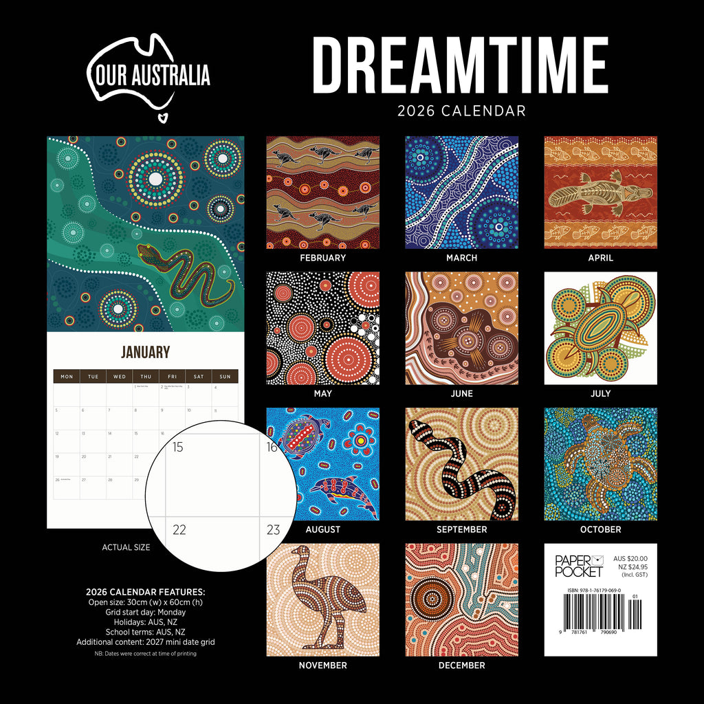 In Aboriginal culture, Dreamtime stories represent the essence of life as we know it today - the creation of humans, animals, fish and birds. Discover some of these amazing stories in this beautiful Dreamtime 2026 wall calendar.