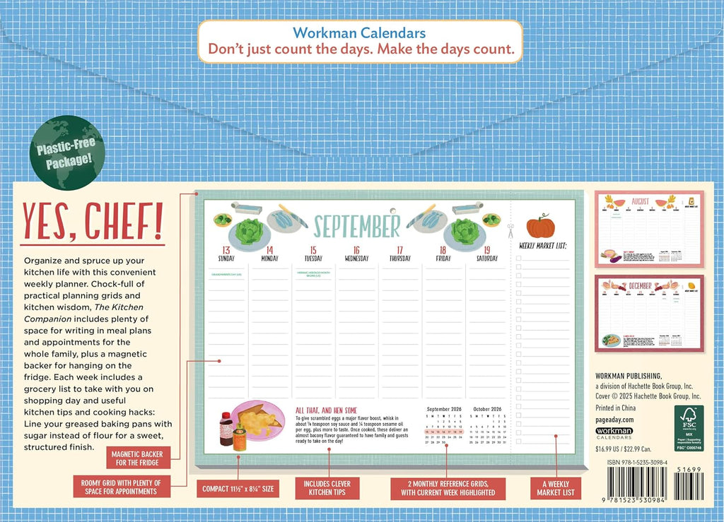 THE ULTIMATE KITCHEN CALENDAR: Includes space for your grocery list, clever kitchen tips, and charming food-themed illustrations to cheer up your meal planning.