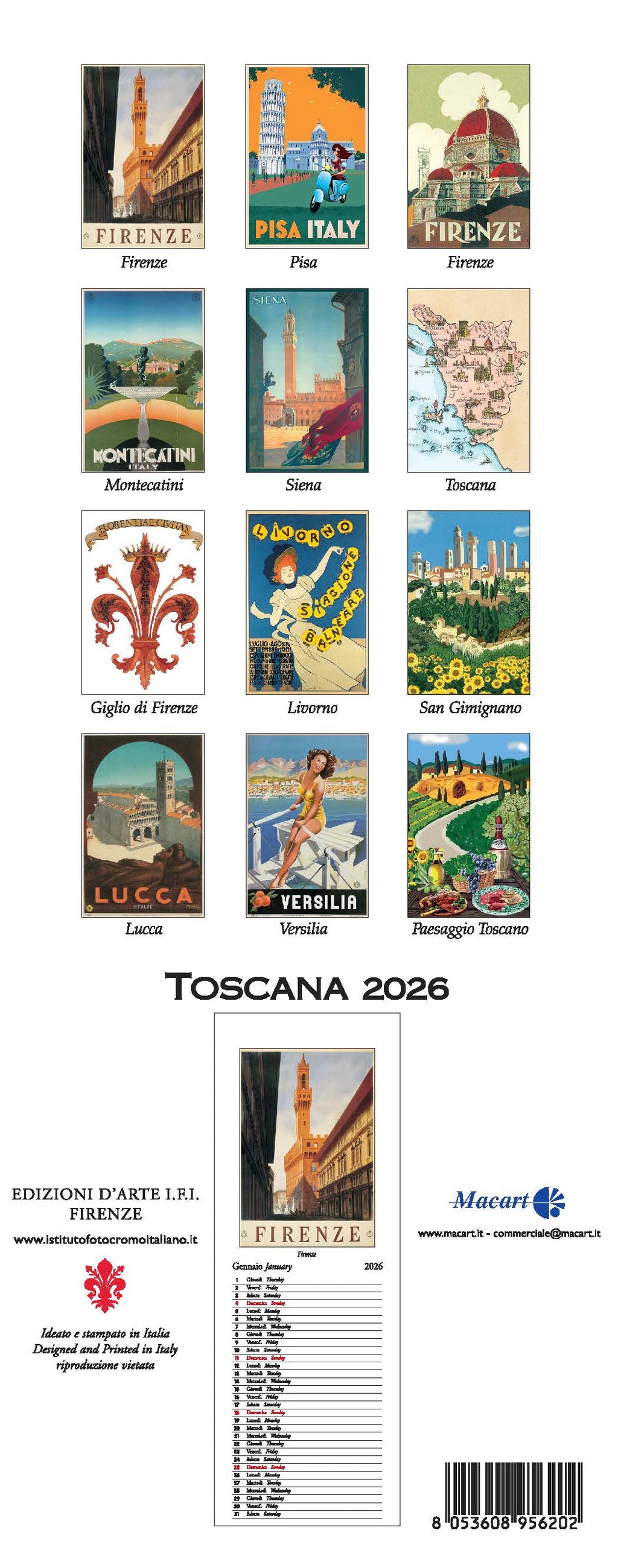 Let Tuscany's rolling hills and timeless towns brighten your year with the Toscana – 2026 Slim Wall Calendar. Each page features stunning vintage-style artwork that captures the warmth and elegance of this beloved region.