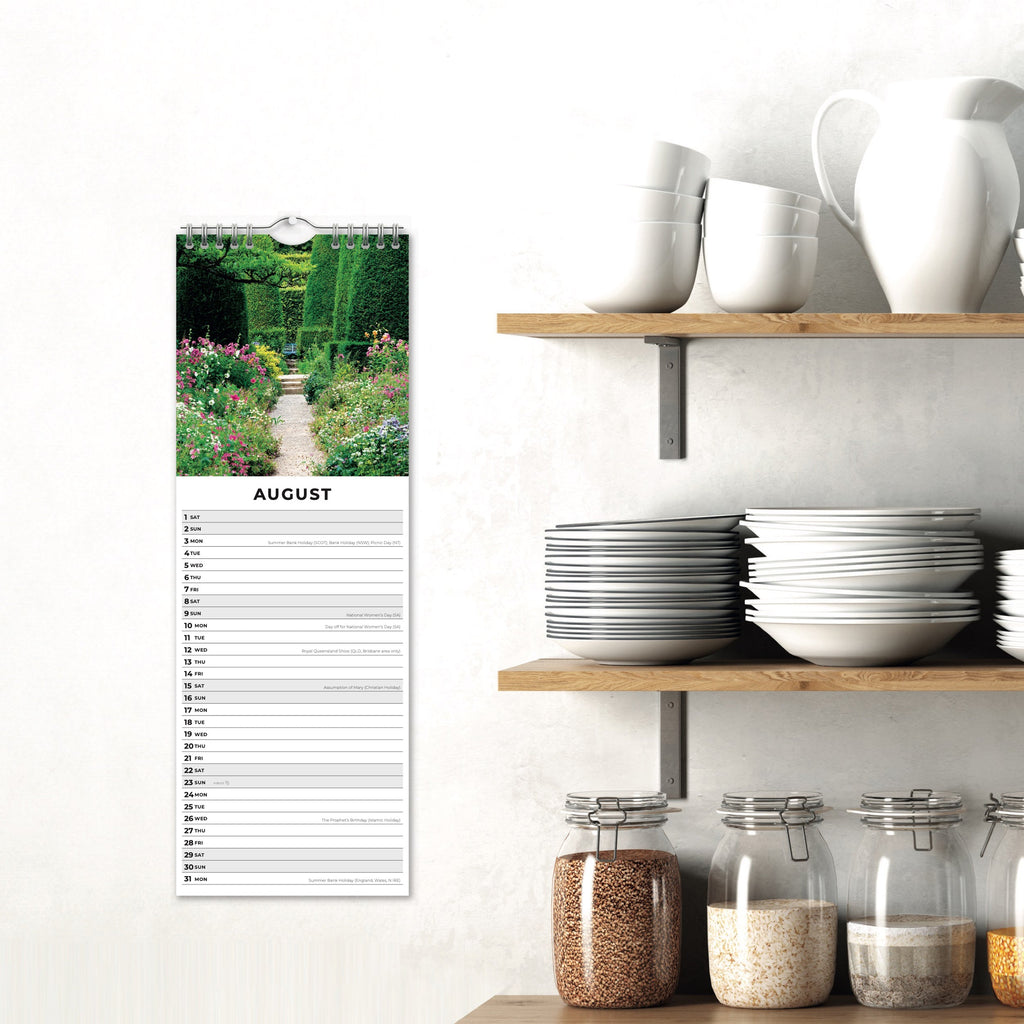 Explore the year ahead with our exquisite 2026 Tranquil Gardens - Slim Wall Calendar, showcasing 12 stunning 41 x 15 cm images—one for each month. With its sleek vertical format, this calendar brings a stylish and space-saving touch to any wall, while highlighting the beauty of Tranquil Gardens throughout the year.