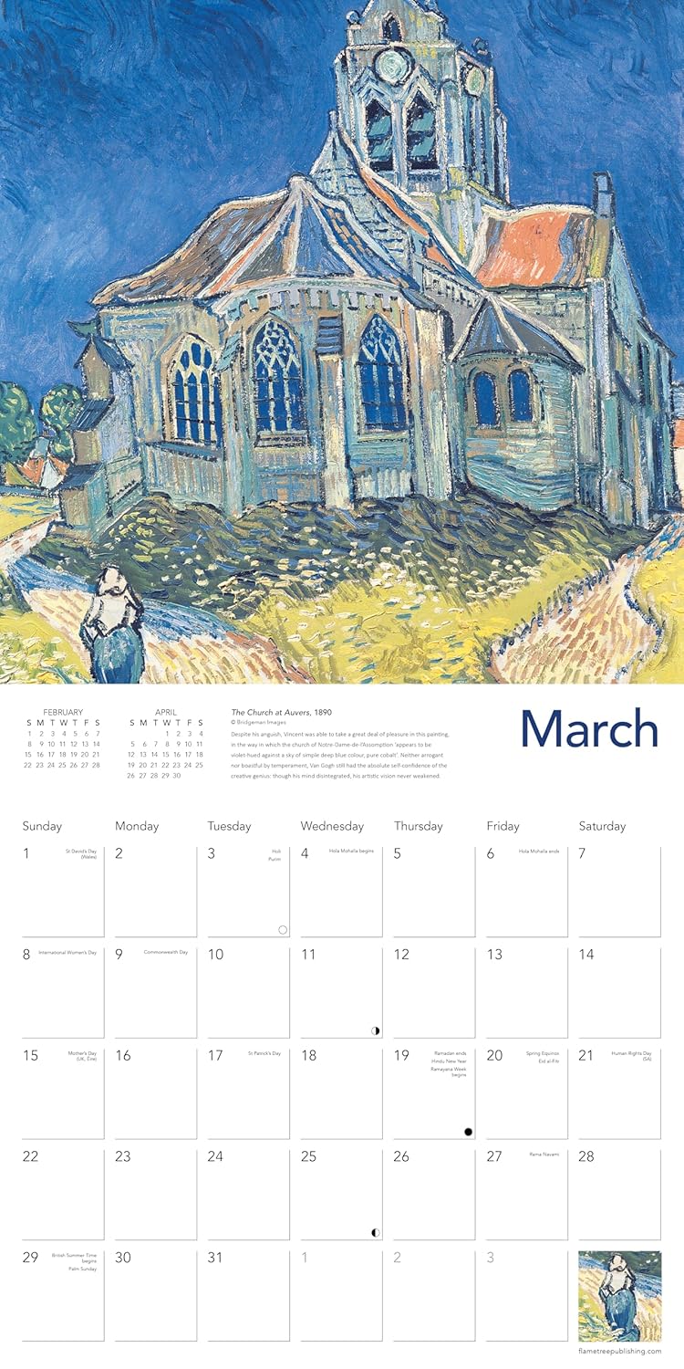 Vincent van Gogh is famous throughout the world for his stunning artworks. His extensive portfolio exceeds some 2,000 pieces of art, of which 800 were oil paintings. Some of his most recognizable landscapes can be found in this stunning calendar: Starry Night Over the Rhone, Cypresses and The Yellow House to name just a few. Informative text accompanies each work and the datepad features previous and next month’s views. Printed on FSC-certified paper, with plastic-free packaging.