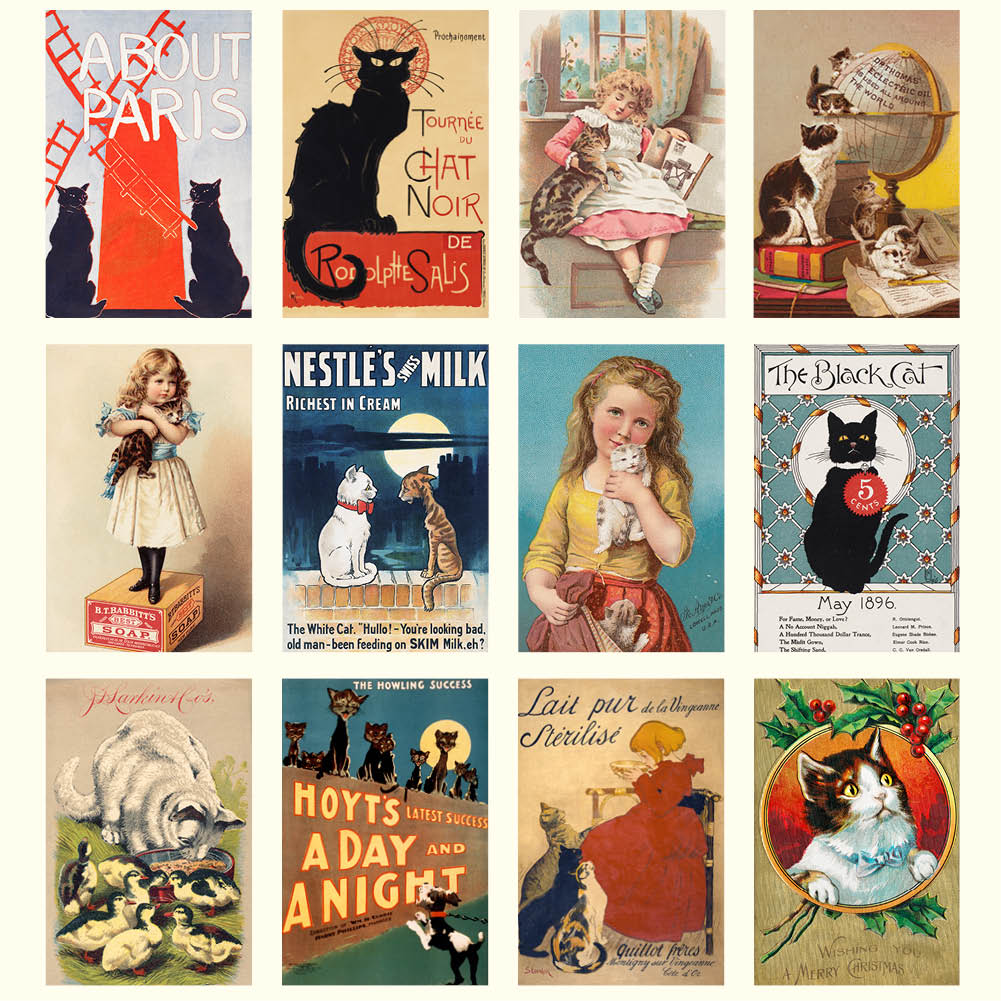 A delightful collection of vintage cat illustrations