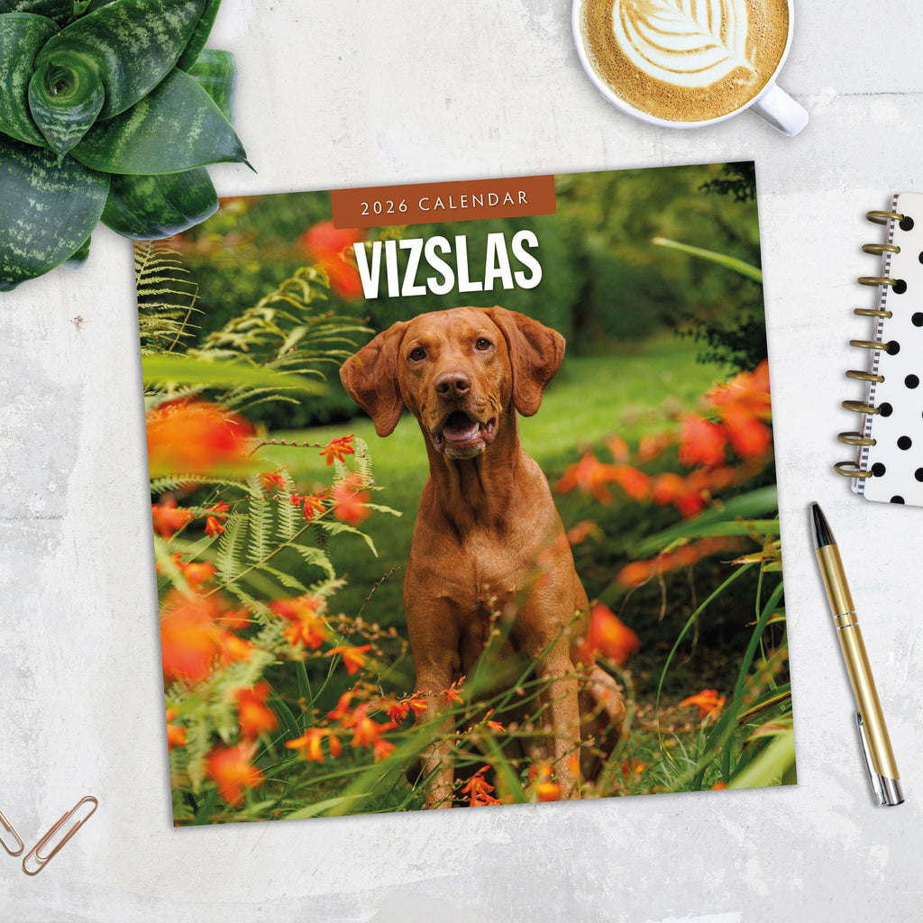 Packaged in a 100% plastic-free, sustainable, FSC-certified envelope, this 2026 Vizslas Square Wall Calendar from Red Robin Publishing Ltd includes 12 months plus 4 bonus months, providing extended planning and a full year of enjoyment. .