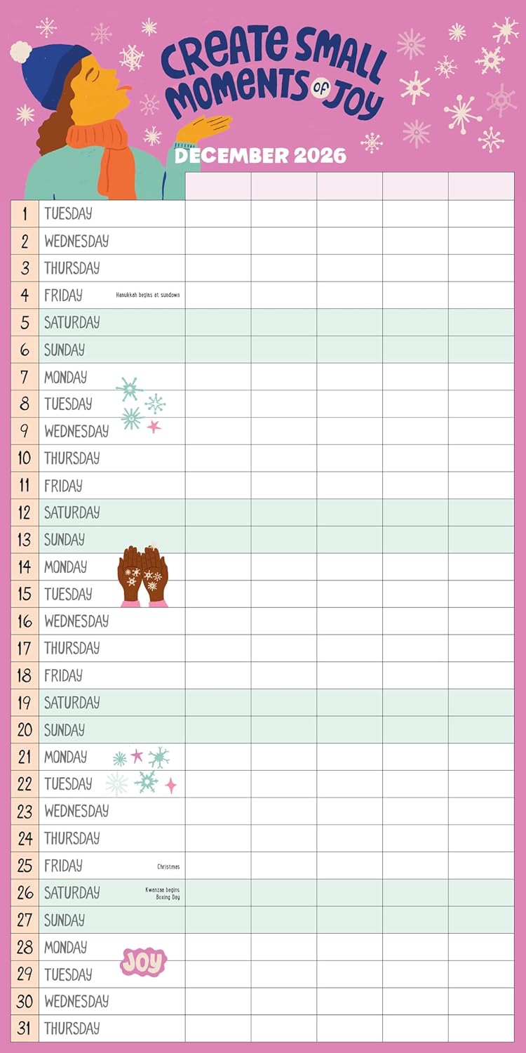 WARMTH, INSPIRATION – AND STICKERS!: Each month features different fun illustrations and empowering messages like There is power in our unity. Plus a drop-down storage pocket and over 170 stickers for marking special days!