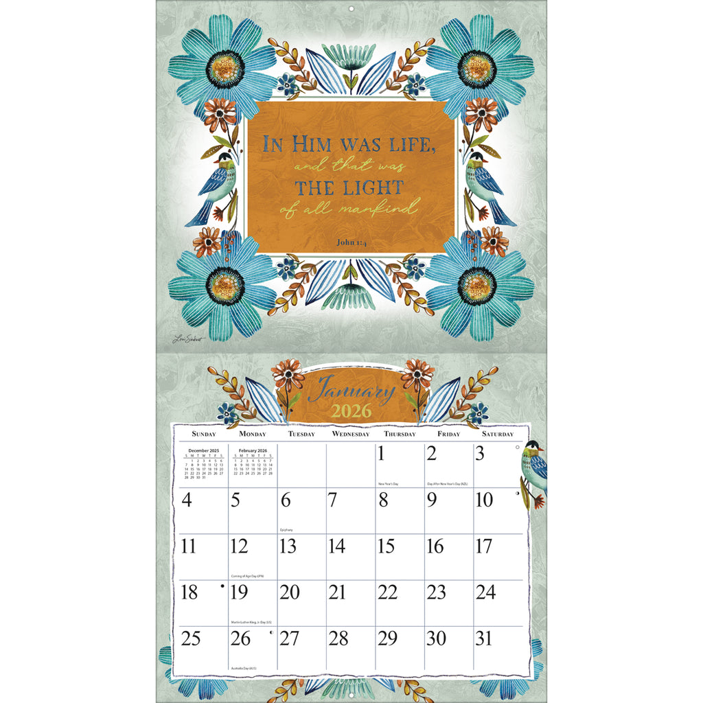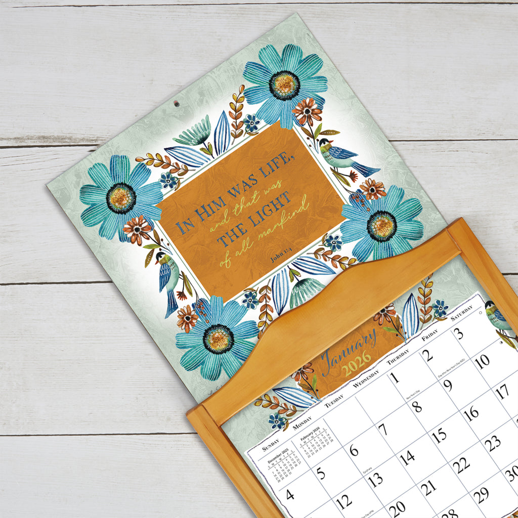 Find peace and inspiration throughout the year with the 2026 Forever Faithful Deluxe Wall Calendar by LANG. This uplifting calendar features serene still-life artwork paired with faith-filled messages that encourage reflection and inner calm. Each month brings gentle scenes filled with soft florals, rustic home accents, and comforting words that speak to the heart.