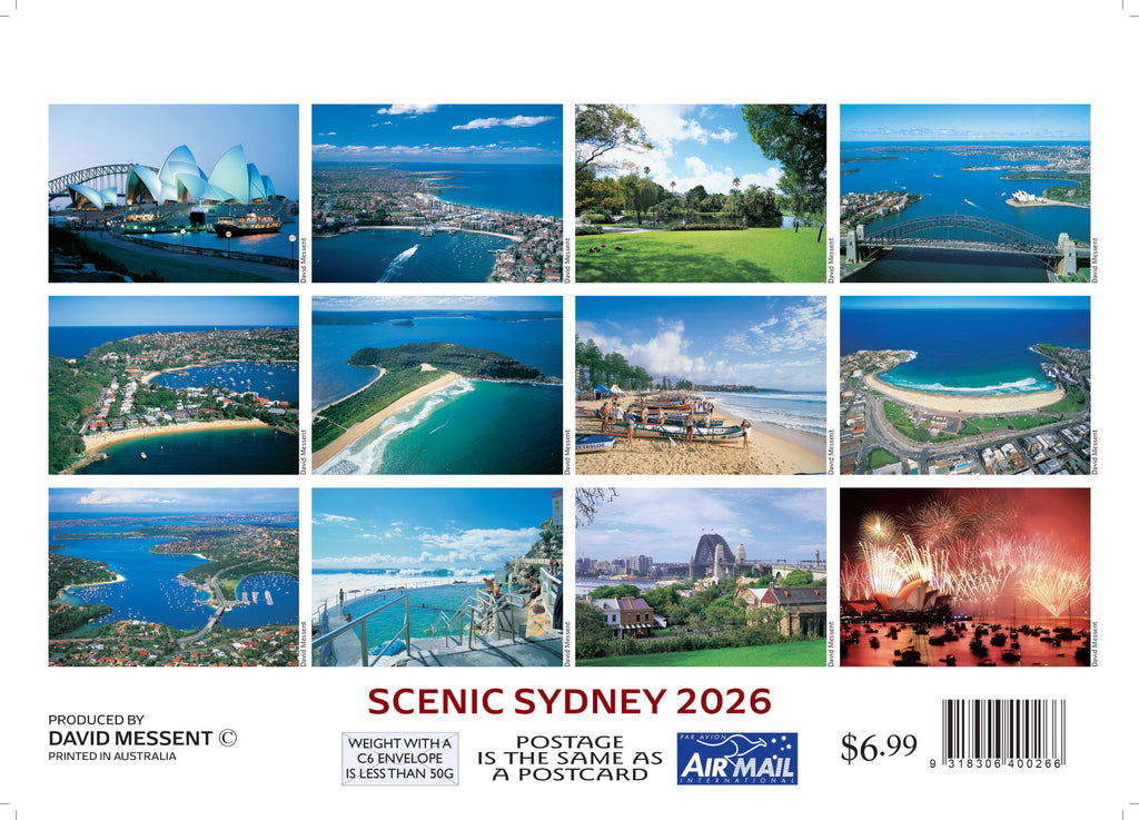 The 2026 Mini Scenic Sydney By David Messent - Mini Pocket Calendar is a compact journey through the iconic sights of Australia's stunning harbor city. Measuring just 15cm x 10cm when closed, this pocket-sized calendar is perfect for carrying a piece of Sydney's charm wherever you go. Each month features a captivating photograph showcasing a different scenic vista, from the iconic Sydney Opera House to the sparkling waters of Sydney Harbour and the bustling streets of the city center. Explore the beauty and vibrancy of Sydney with this delightful mini pocket calendar. .