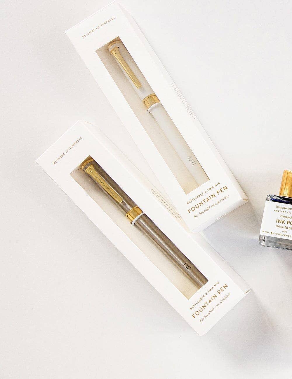 Traditional Gold Fountain pen with inlaid colour detailing, clip cap, and pen clip, boxed in our Bespoke Signature Card box with Gold foil letterpress. Our refillable ink fountain pen is a beautiful pen that eludes an air of timeless old fashioned elegance. Includes a refillable cartridge which you can fill from an ink pot. This pen also fits our Bespoke No. F26 disposable fountain pen ink cartridges. Material Metal Size 180mm x 45mm x 25mm Refills Suits our Bespoke No. F26 fountain ink refills. and Bespoke Ink Pots To protect your fountain pen in transit, ink is not included inside of the pen. .